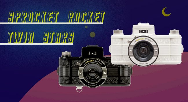 Twinkle twin stars are discovered on Lomography galaxy. Twin stars come in black and white versions, and are known as the sparkling Sprocket Rocket. Sprocket Rocket this 35mm compact boasts a super-wide angle lens for panoramas, dual winding knobs for easy multiple exposures and of course, sprockets!