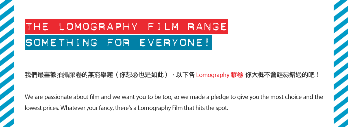 Do not reply to this email! This email is being sent by an automated message system. Replies sent to newsletters@lomographyasia.com will not be received. To unsubscribe, please use the link provided in this newsletter. To contact us, send an e-mail to: